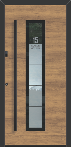 Besonders gefragt sind die Modelle mit hohem Glasanteil und Sprossendesign, die viel Tageslicht einlassen und gleichzeitig elegante Akzente setzen. Wählen Sie aus einer Vielzahl an Ornamentgläsern für Ihre individuelle Gestaltung. Ein besonderes Highlight: Ihre Hausnummer oder Ihr Familienname können direkt ins Glas integriert werden – entweder im Türblatt oder im optionalen Seitenteil.