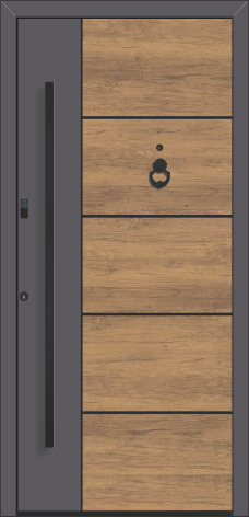 Dank flügelüberdeckender Füllung überzeugt Ihre neue Haustür mit einer modernen, ebenmäßigen Optik. Gleichzeitig profitieren Sie von einer pflegeleichten Oberfläche, verbesserten Isoliereigenschaften und reduziertem Einbruchrisikodurch weniger Angriffsfläche.