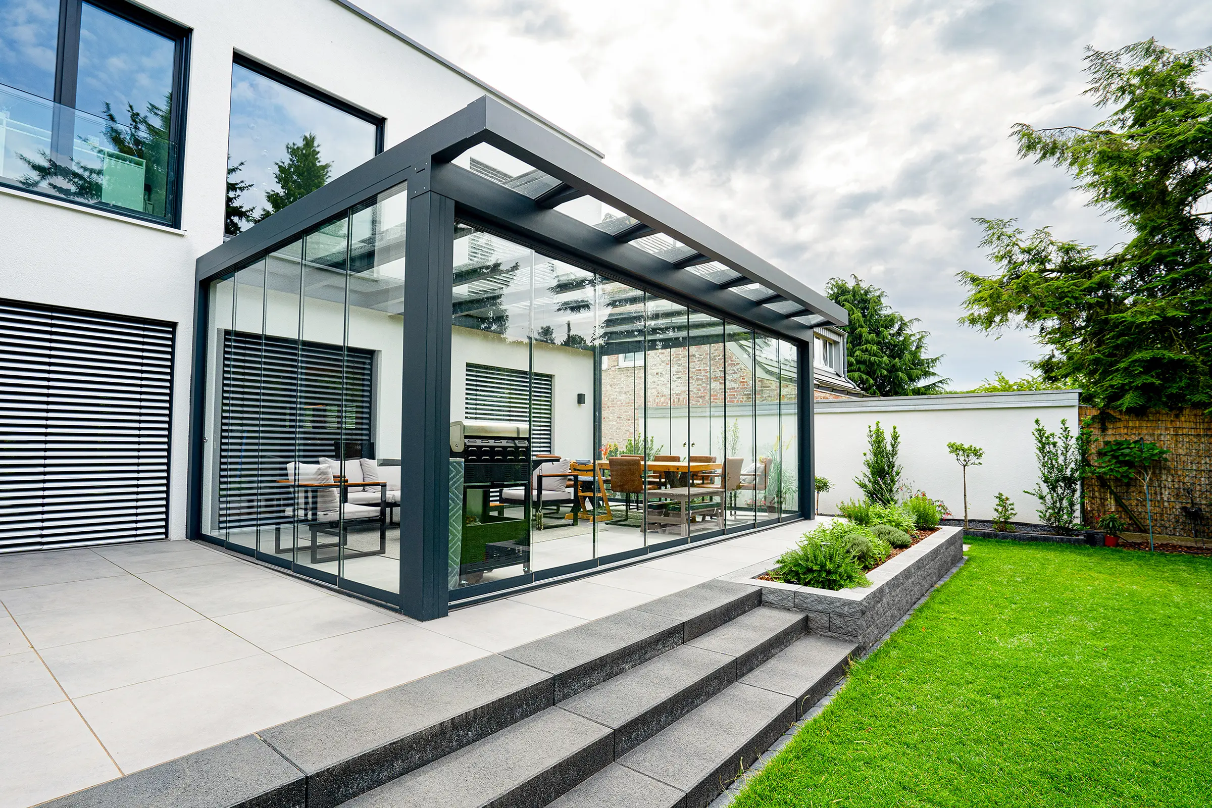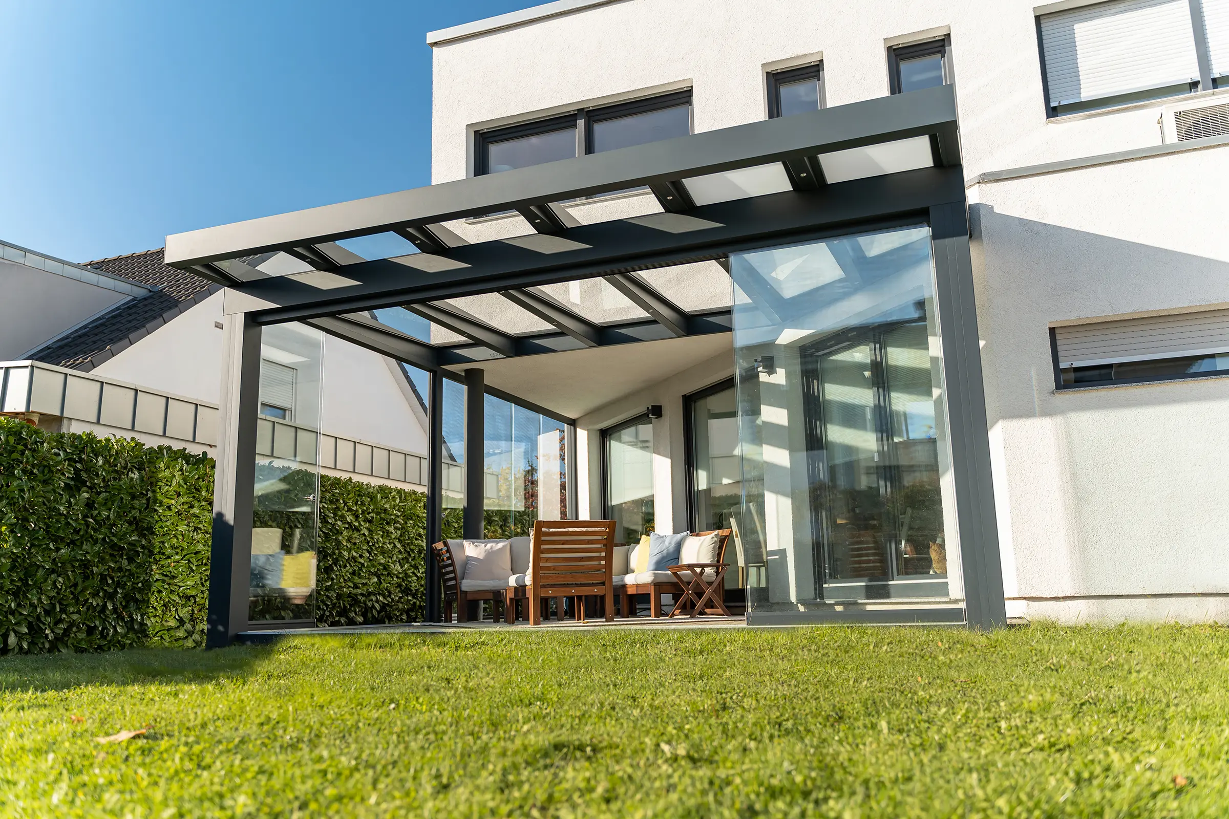 Trotz ihrer schlanken Anmutung ist die Ultraline Style technisch auf dem gleichen Niveau wie die Classic-Variante: Maßanfertigung ist inklusive, die Dacheindeckung besteht wahlweise aus 8 mm oder 10 mm Verbundsicherheitsglas. Varianten mit Milchglas oder Hitzeschutz sind ebenfalls möglich. Wer minimalistisches Design mit hoher Funktionalität verbinden möchte, trifft mit der Ultraline Style die richtige Wahl.